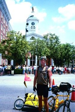 At Tuscarora Mountain I notice that I am on stretch of Route 30 that is quite deserted.  All I pass by are farms, houses and Mennonite and Brethren churches.  No gas stations, which is bad news for me because I'm nearly out of water.  I pass by one country grocer that is closed for the day, but I take advantage of the vending machine oasis and have a root beer.  It is nearly sundown and I am exhausted.  I finally make it to Saluvia only to find that there is no station or bivouac area.  No trespassing sign discourage me from throwing up my tent.  Desperate for a place to rest and water, I knock on somebody's front door.  The couple that answers are a little weirded out but they grant me permission to pitch a tent in their backyard and refill my water bottles.  I go to sleep sticky from sweat and grime, and I even muster up enough energy to read a chapter from The Horse Whisperer.