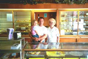 Elizabeth Schell asks me if need any more coffee.  I ask her about the bakery and she tells me that it has been a family business since 1922.  Her husband John is the third generation owner.  Elizabeth went to school at the University of Michigan, thus answering a riddle that had been on my mind since I had sat down:  I was in Ohio yet there was a U of MI clock on the wall above the ice cream and coffee counter.  She got her degree in nursing, but decided to work in her husband's bakery.  Her son, John Jr., had been a diver in the Navy, and is now preparing to take over the family business.  She shows me pictures of the bakery in its previous incarnation as an early 1900's hotel, in which horses and carriages were parked outside.